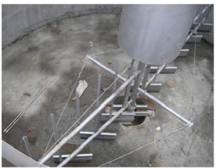 工作原理:SZX 型中心傳動(dòng)濃縮機(jī)采用蝸輪蝸桿(<φ8m 可采用擺線針輪減速機(jī),>φ14m 采用中心回轉(zhuǎn)齒輪)傳動(dòng),刮泥壁上設(shè)計(jì)有縱向攪拌柵條,刮臂旋轉(zhuǎn)時(shí)柵條起攪拌作用,加速活性污泥的下沉,刮泥板外緣線速度≤3m/min。整個(gè)刮泥機(jī)構(gòu)可以手動(dòng)提升400mm (用擺線針輪減速機(jī)不可以提升)。